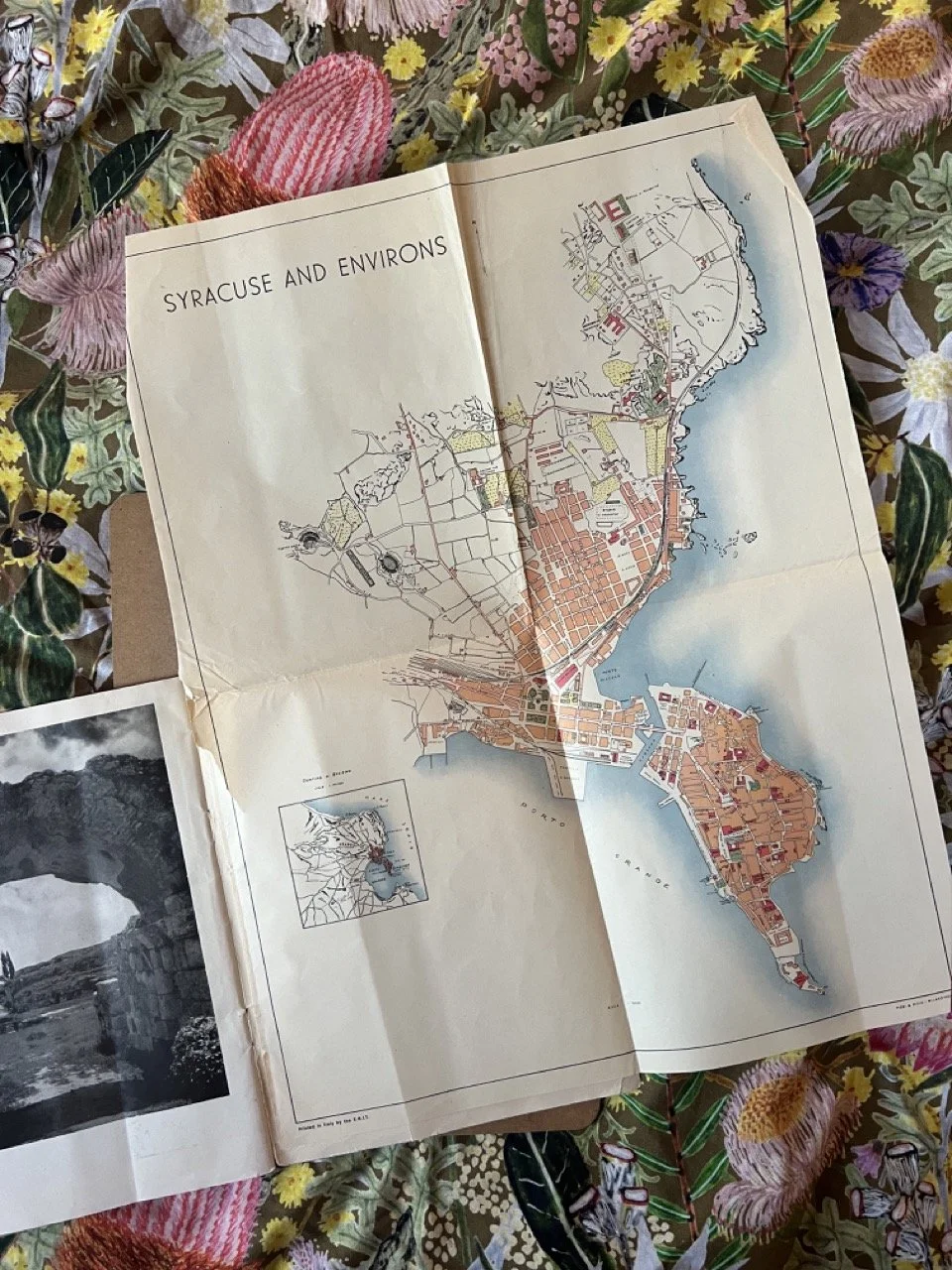 Knowing that we'd walk some of the same footsteps of my ancestors, it brought about a deep-dive into some of my grandmother's history and belongings. We found an old travelogue of hers that showcased the city of Syracuse (or “Siracusa" in Sicily) and immediately added it as a stop on our itinerary!